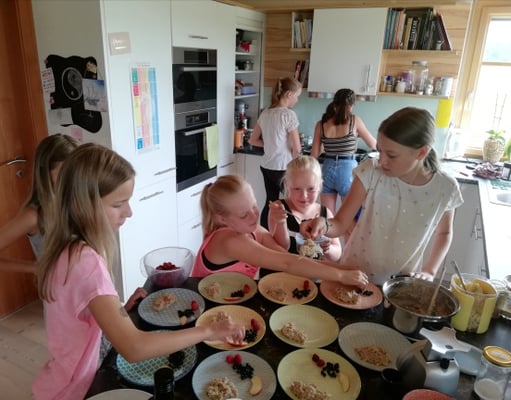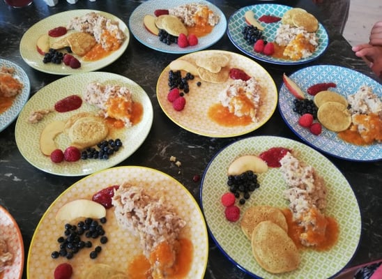 Ausserdem gab es diesmal ein zweites Thema.. nämlich gemeinsam warmes Frühstück zubereiten. Die Kinder sind immer mit großem Eifer und ihrer ganzen Kreativität dabei.