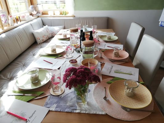 In meinen Frühstücksworkshops und vegetarischen Kochkursen gebe ich meine Erkenntnisse und mein erlerntes Wissen der letzten Jahre weiter. Alles was mir zu einer gesünderen Ernährungsweise verholfen hat und eine Unterstützung für die Gesunderhaltung ist, kommt einfach, unkompliziert und leicht umsetzbar auf den Tisch. Es gibt jede Menge Tipps und Tricks und ein Handout mit allen Rezepten. Ausserdem besteht immer die Möglichkeit die physikalische Gefäßtherapie Bemer zu testen und hochwertige Öle der Firma Farmgoodies zu verkosten. Leider vergesse ich die meiste Zeit aufs Fotografieren daher gibt´s vom gestrigen Kochkurs keine Fotos...