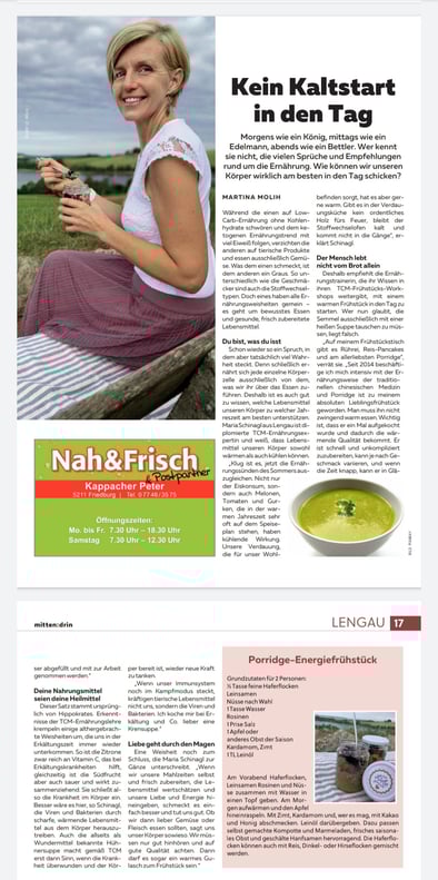 Über mein Lieblingsthema, nämlich die Ernährung hat mich Martina Molih von der mitten:drin interviewt und hat einen wunderschönen Artikel geschrieben...